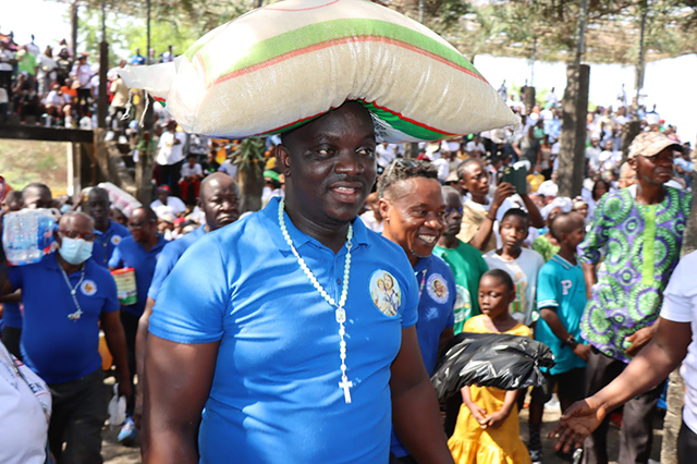 The pilgrimage this year attracted thousands of participants from various parishes, who gathered at Moulton Corner to engage in a solemn procession reciting the Rosary as they walked to the shrine, highlighting a collective atmosphere of reverence and community. The procession was led by Fr. Boniface B. Florkiah, the parish priest of Christ the King Church, who emphasized the importance of unity and prayer in the lives of the faithful.